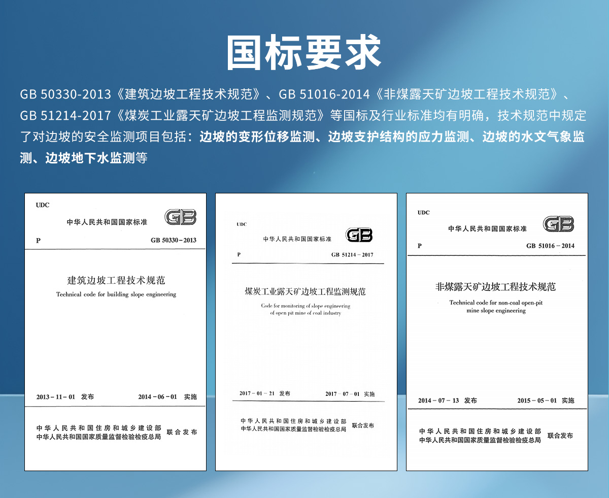 邊坡安全監(jiān)測系統(tǒng)依據(jù)國標(biāo)要求,對(duì)邊坡的“變形位移、支護(hù)結(jié)構(gòu)受力情況、水文氣象、地下水”進(jìn)行全方位、高精度的實(shí)時(shí)在線監(jiān)測。同時(shí),我司免費(fèi)提供的監(jiān)測預(yù)警平臺(tái),賦予邊坡安全監(jiān)測系統(tǒng)全天候的守護(hù)能力以及智能預(yù)警機(jī)制,為邊坡的安全管理提供了堅(jiān)實(shí)的保障。