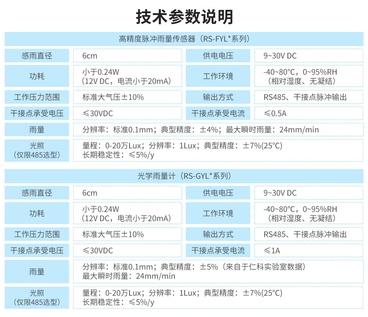 高精度脈沖雨量傳感器(RS-FYL*系列)